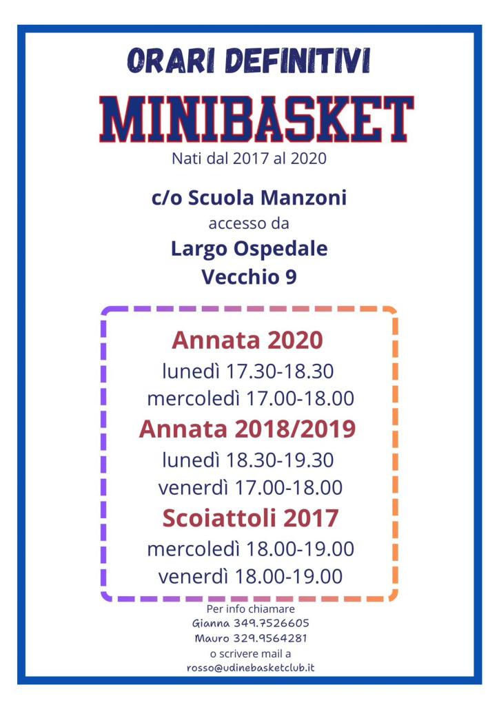 ATTENZIONE: ORARI DEFINITIVI MINIBASKET!!!